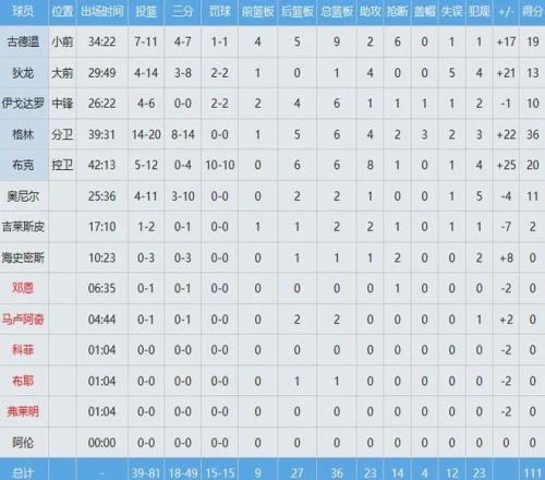 太阳那边,杰伦格林投篮20中14,高效狂轰36分6板4助2断3帽,强势填满数据栏,布克罚球10中10保持着20分外加6板8助的稳定输出。