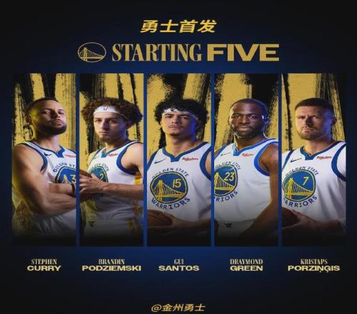 勇士首发桑托斯+追梦格林+波尔津吉斯+波杰姆斯基+库里;太阳首发古德温+狄龙+伊戈达罗+杰伦格林+布克。
